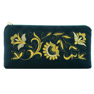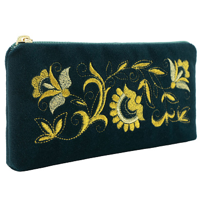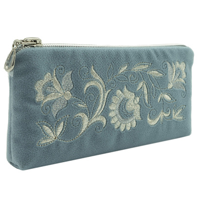 Косметичка «Летний сад». Цвет морской волны с вышивкой