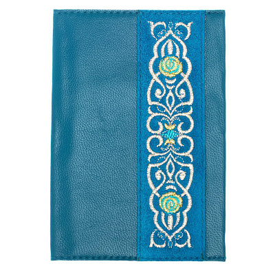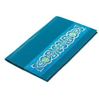 Обложка для паспорта «Аромат розы». Бирюзовая с вышивкой