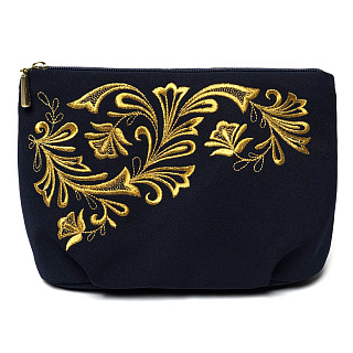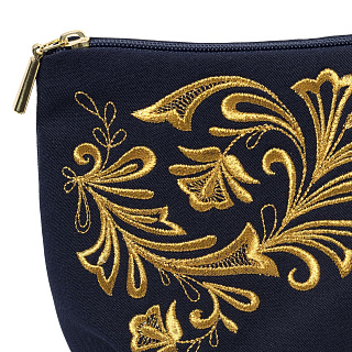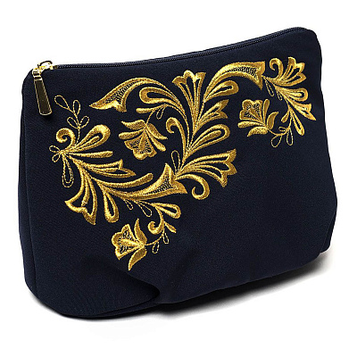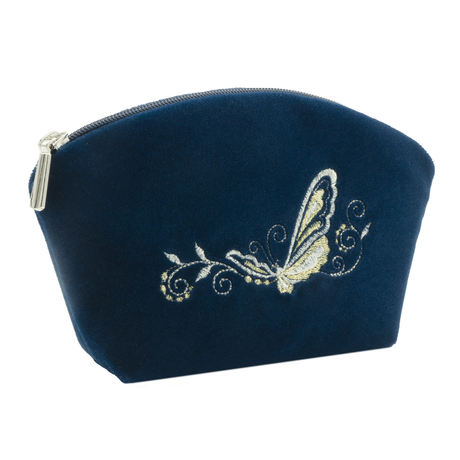 Косметичка "Бабочка". Темно-синяя с вышивкой.