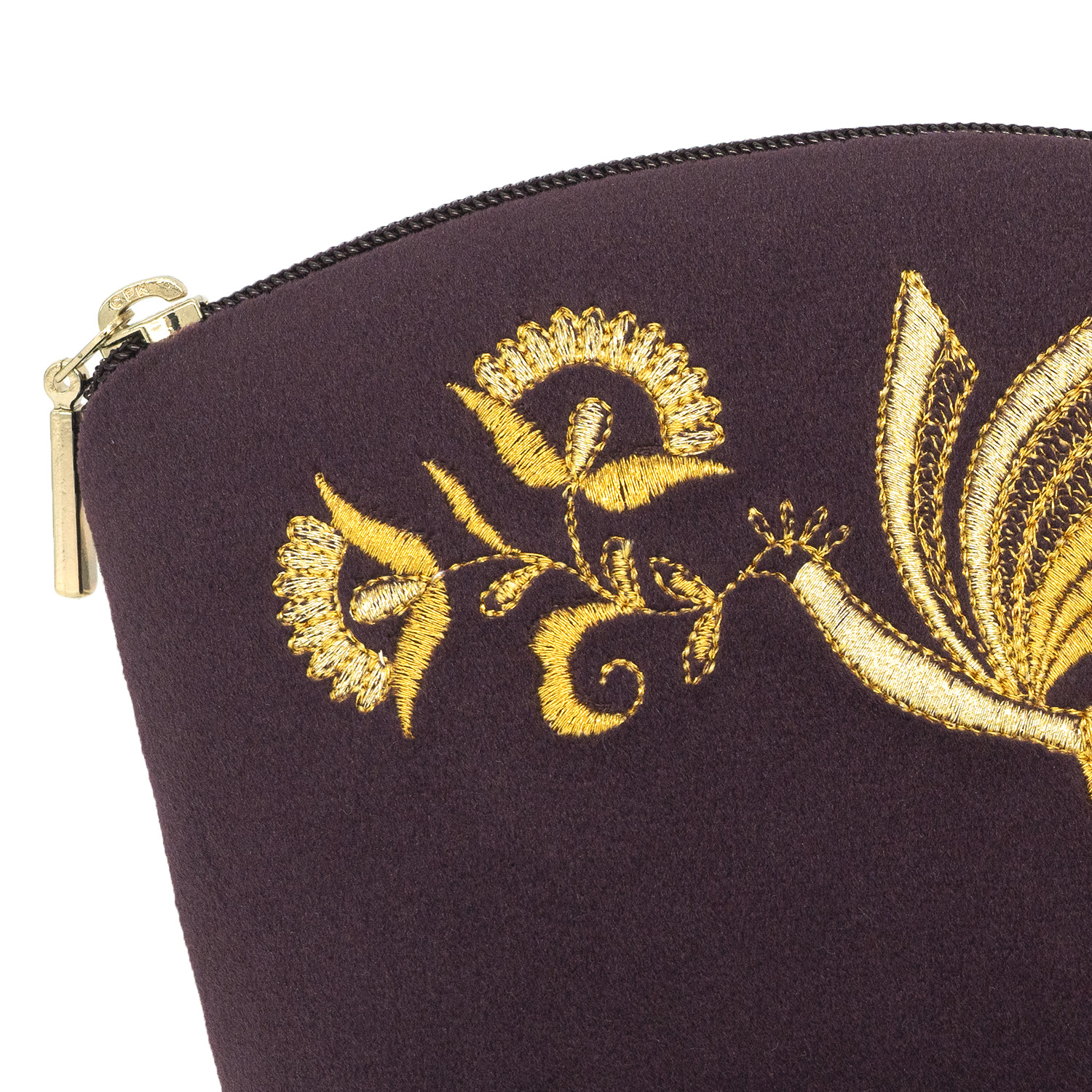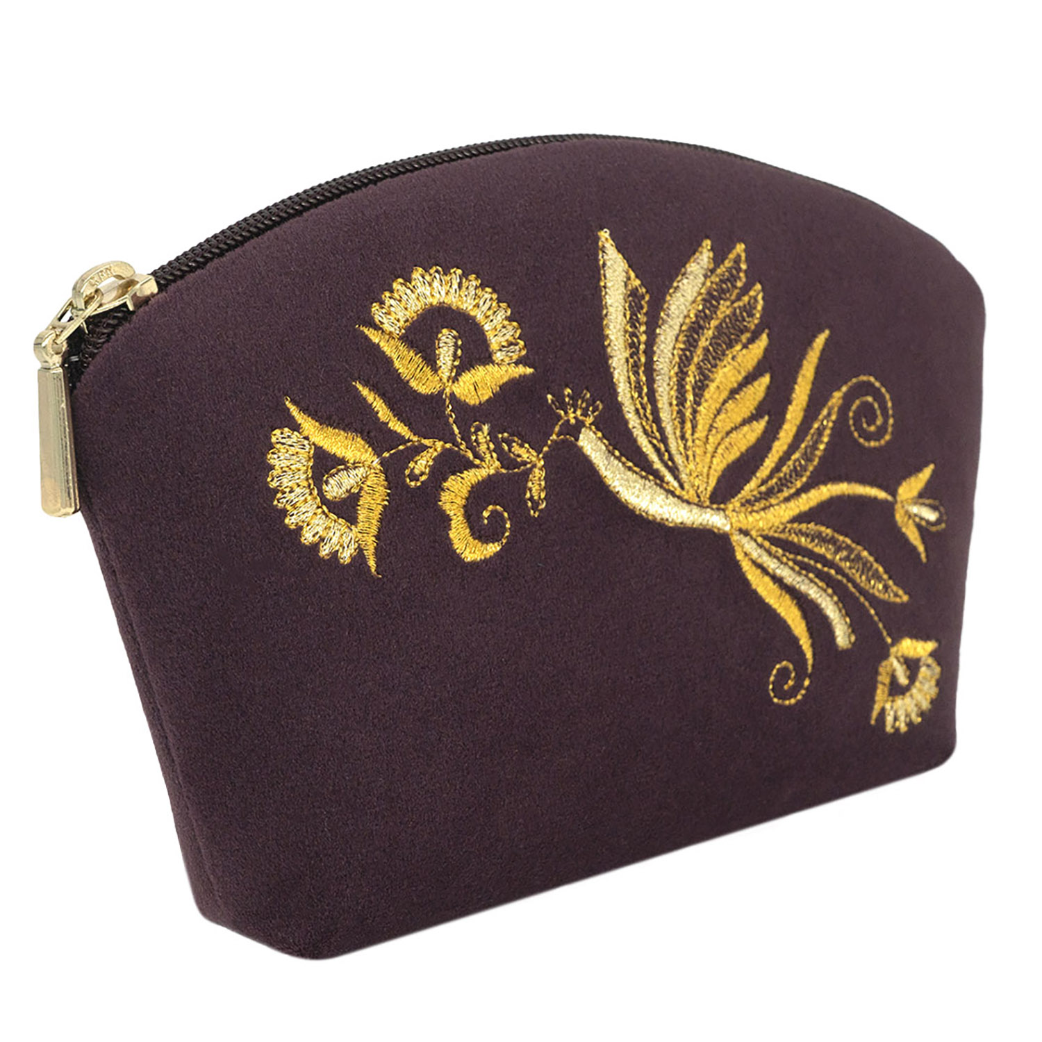 Косметичка "Птица". Фиолетовая с вышивкой.