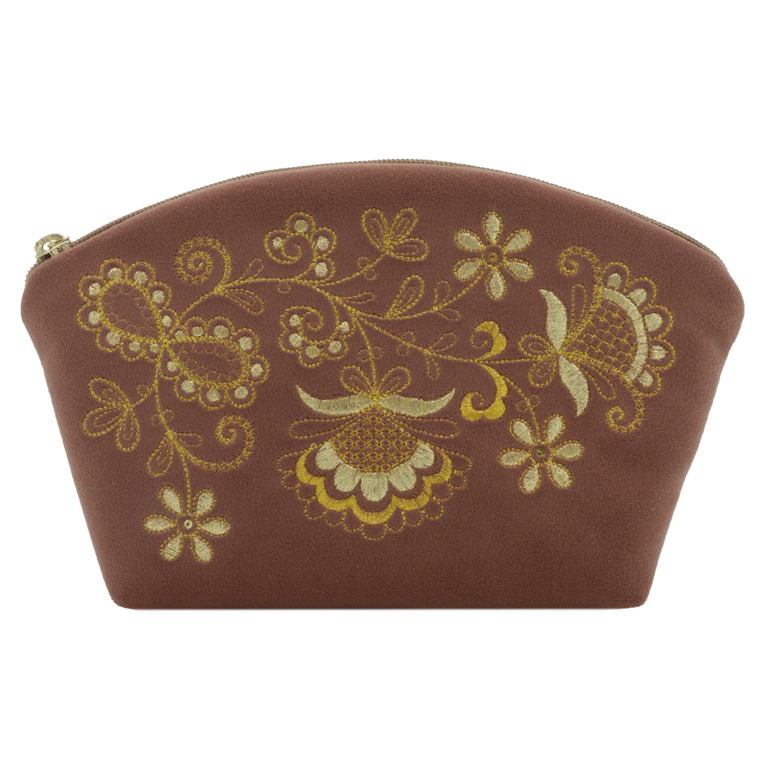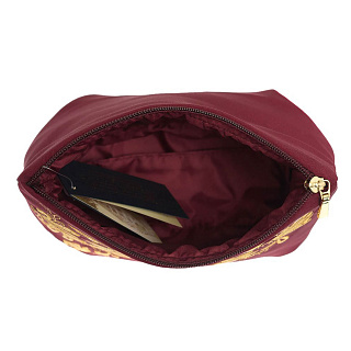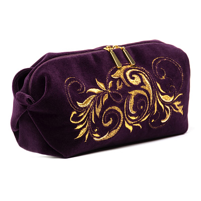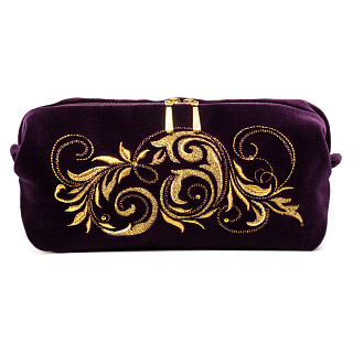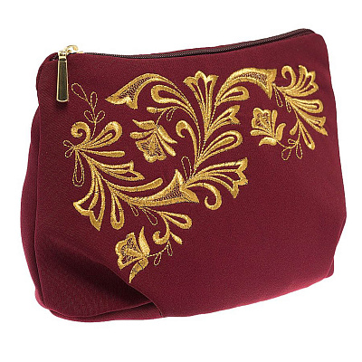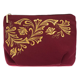 Косметичка "Цветы". Темно-розовая с вышивкой.