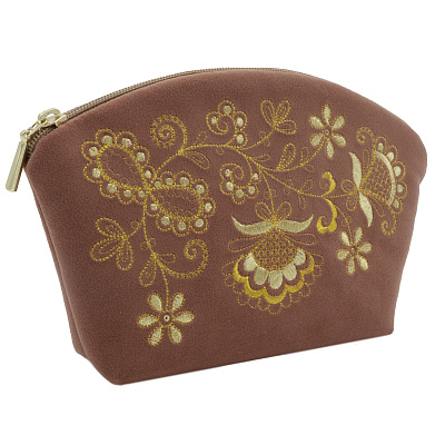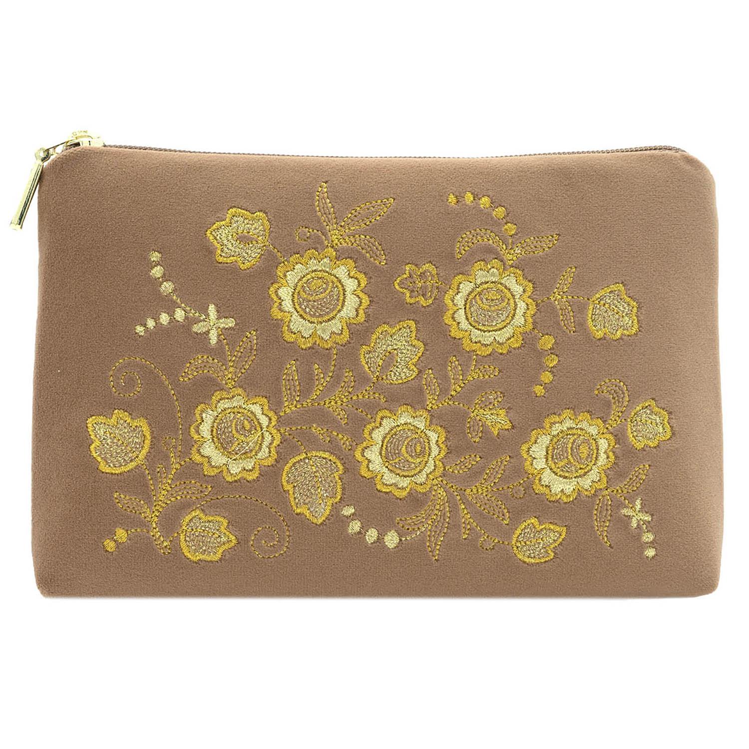Косметичка "Весеннее настроение". Бежевая с вышивкой.