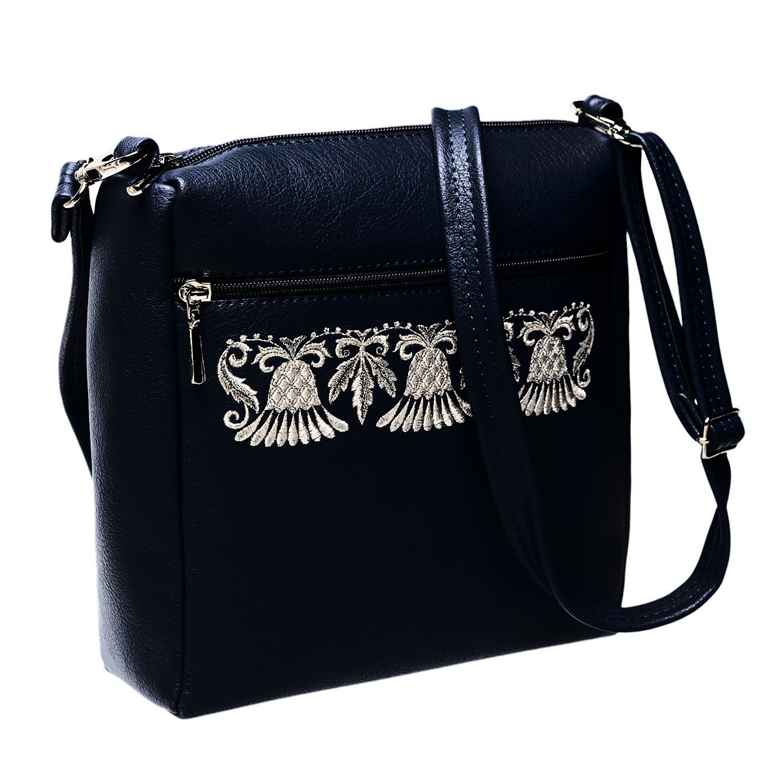 Сумка "Цветок-оберег". Темно-синяя с вышивкой.