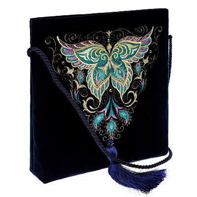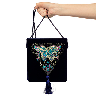 Сумка «Бабочка». Чернильная с вышивкой