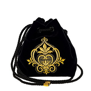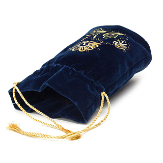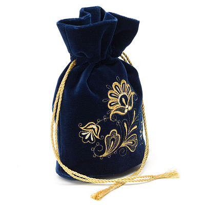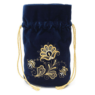 Сумка-мешочек «Романс». Темно-синяя с вышивкой