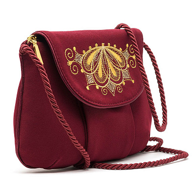 Сумка «Веер». Бордовая с вышивкой