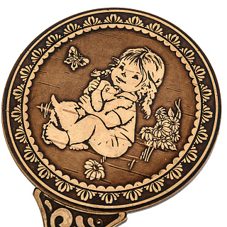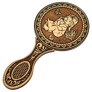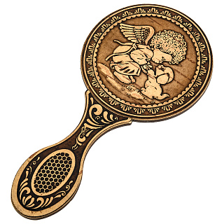 Зеркало с ручкой в оправе из бересты «Ангел»
