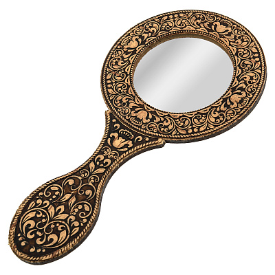 Зеркало с ручкой в оправе из бересты «Дружба»