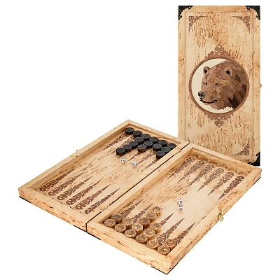 Деревянные нарды дорожные «Медведь» из карельской берёзы