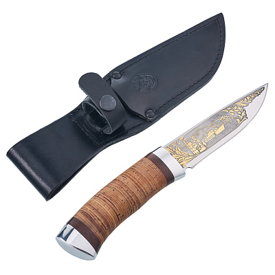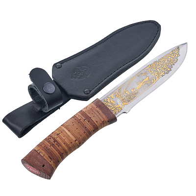Нож сувенирный с рукоятью из бересты «Урал». Златоуст