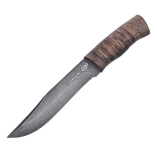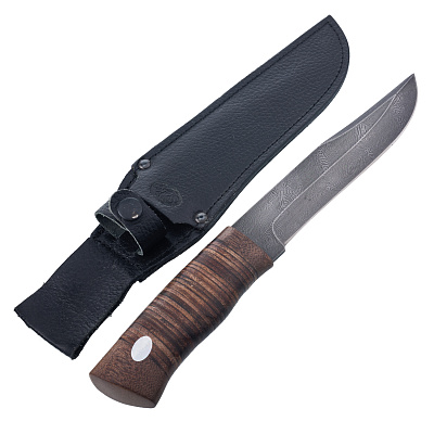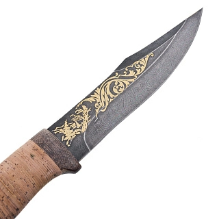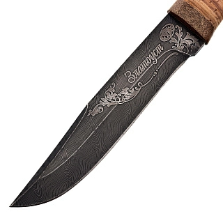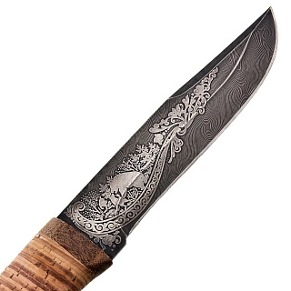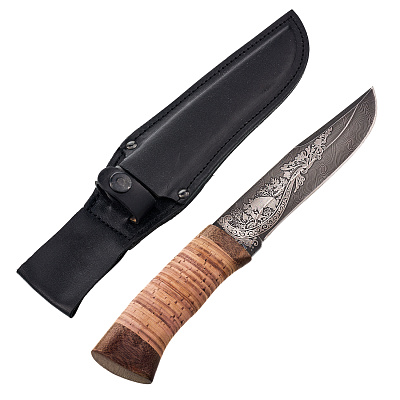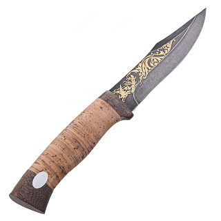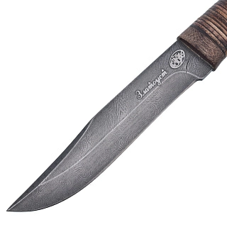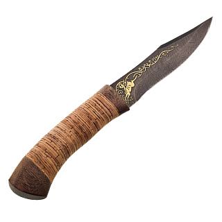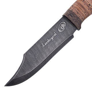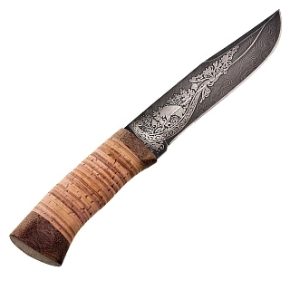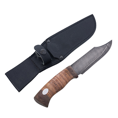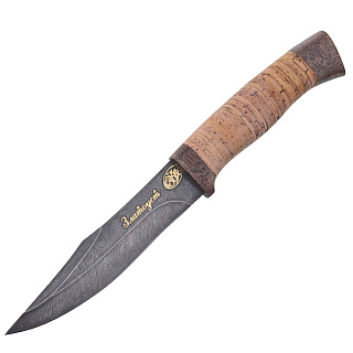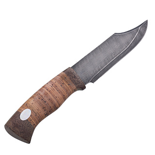 Нож сувенирный из дамасской стали с рукоятью из бересты. Златоуст