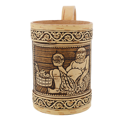 Кружка пивная из бересты «Баня»