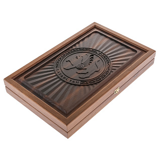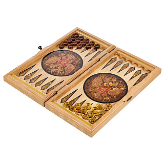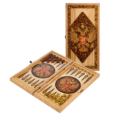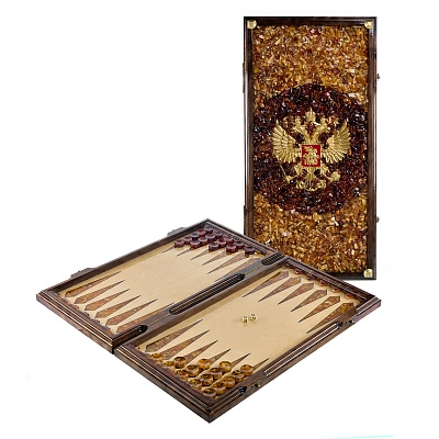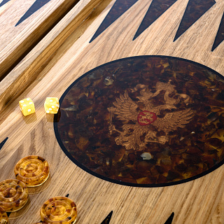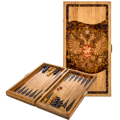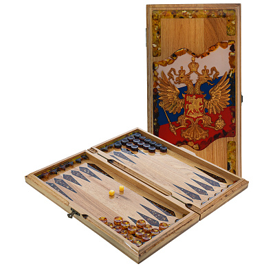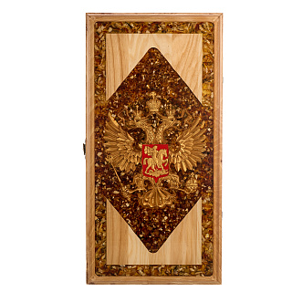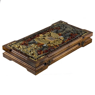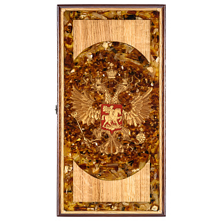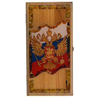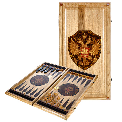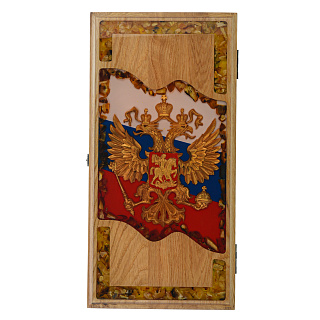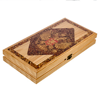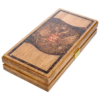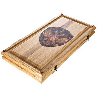 Нарды деревянные резные со столиком «Герб РФ» 60х30 см