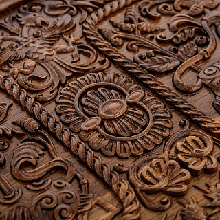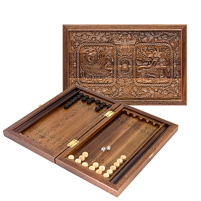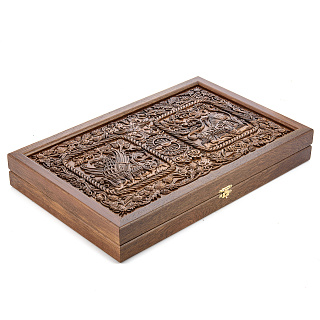 Резные деревянные нарды-шашки «Суздальские див и задумчивый лев»