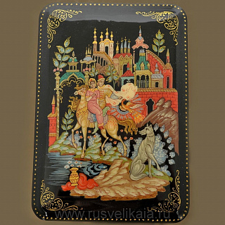 0053585 Домино D6 в резной дубовой шкатулке «ОХОТНИКИ НА ПРИВАЛЕ» RTD-306.M