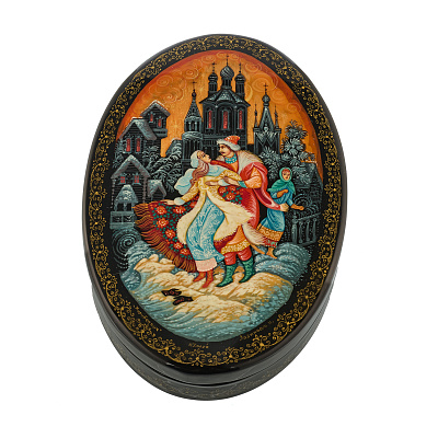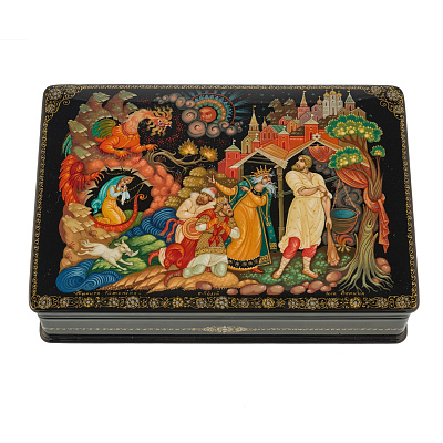 Шкатулка с художественной росписью «Стрелец и Василиса-царевна»
