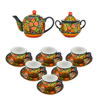 Чайный сервиз на 6 персон с самоваром «Предания старины». Хохлома
