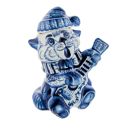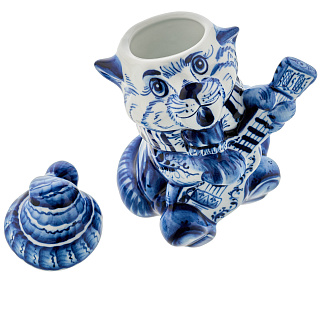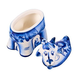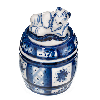 Медовница фарфоровая с росписью «Бочонок с медведем». Гжель