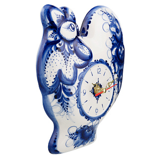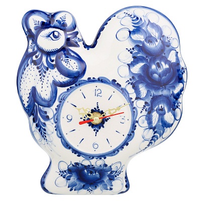 Настенные фарфоровые часы с росписью «Петух». Гжель