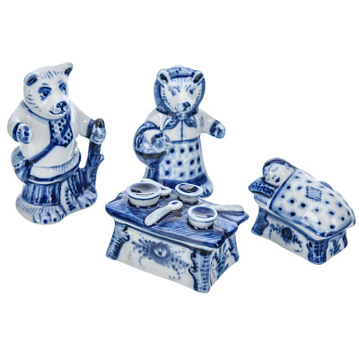 Набор статуэток «Маша и медведь». Гжель