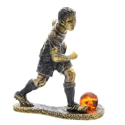 0039483 Бронза Сувенир БРЕЛОК «ФУТБОЛИСТ С МЯЧОМ» 5см