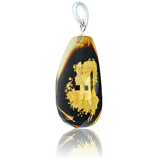 Кулон из натурального янтаря с гравировкой «Камея»