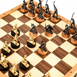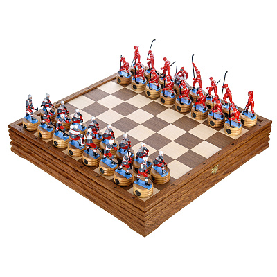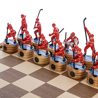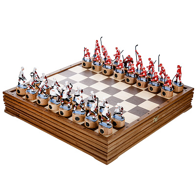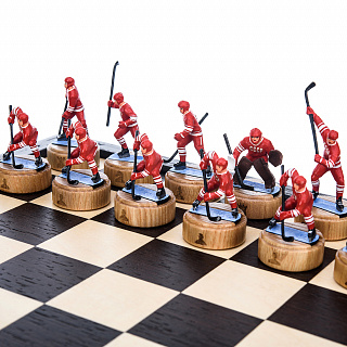 Шахматный ларец с металлическими фигурами «Хоккей. Спартак» 50х50 см