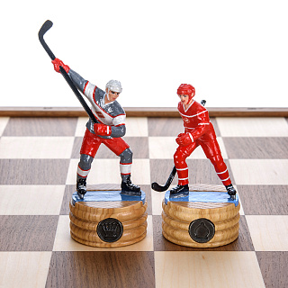 Шахматы деревянные с металлическими фигурами «Хоккей» 37х37 см