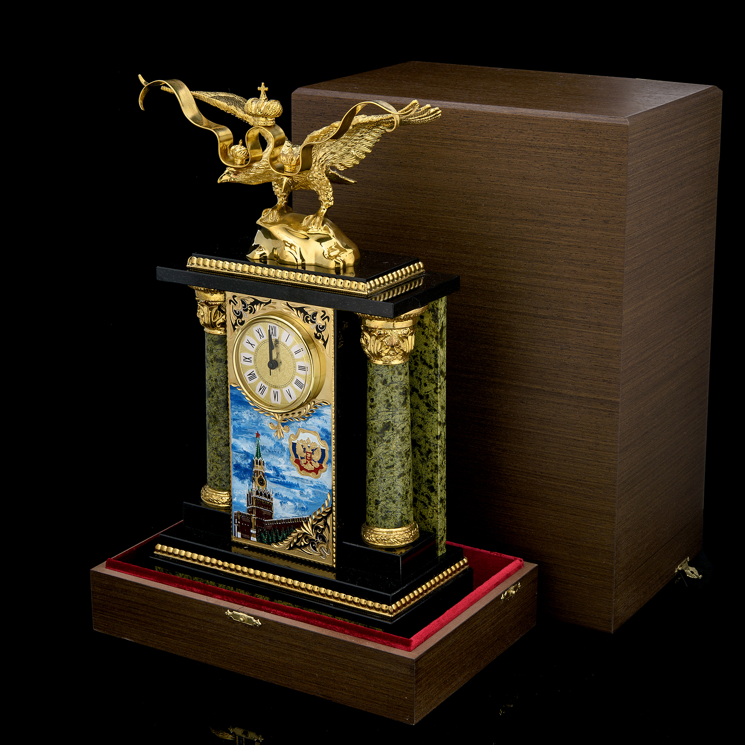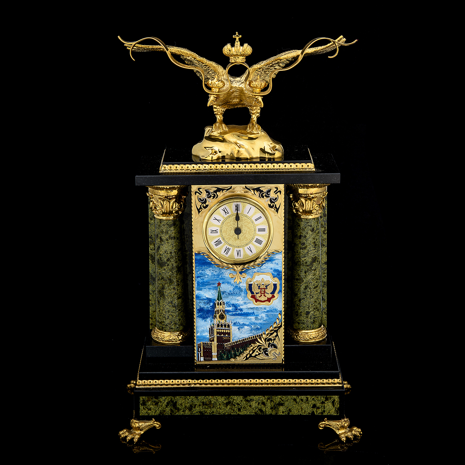 Материалы: латунь, никель, золото 999,9*, эмаль, змеевик.