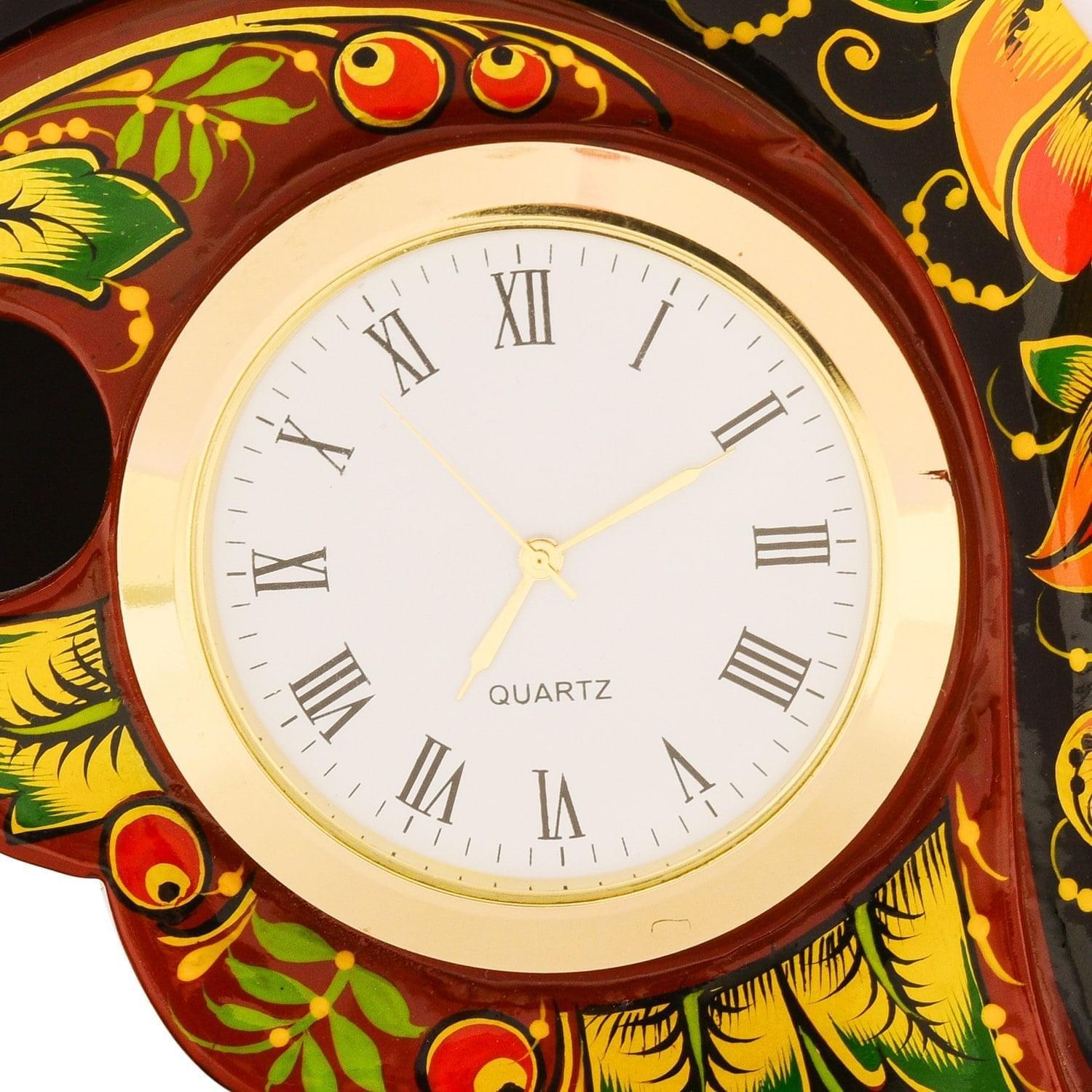 Глухарь - древний символ свободы и духа. Вашему вниманию - дизайнерские часы в русском стиле ручной работы. Они представляют собой коллекционный образец декоративно-прикладного искусства. Этот интерьерный аксессуар с фигурным корпусом из дерева декорирован в технике хохломской росписи. Создают стильный акцент и показывают точное время.