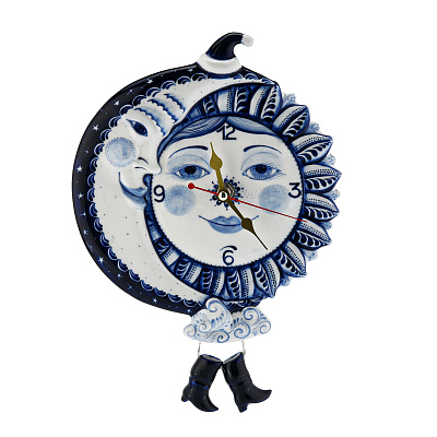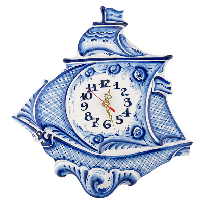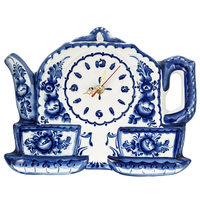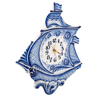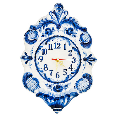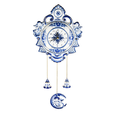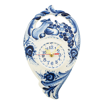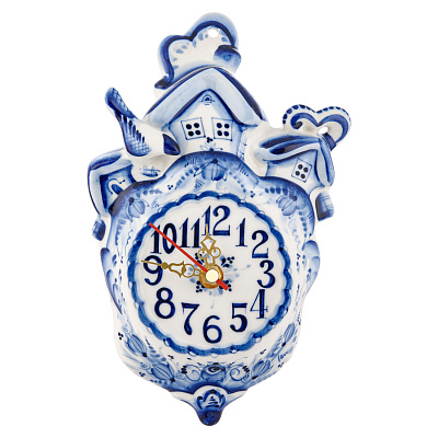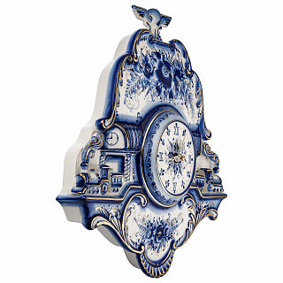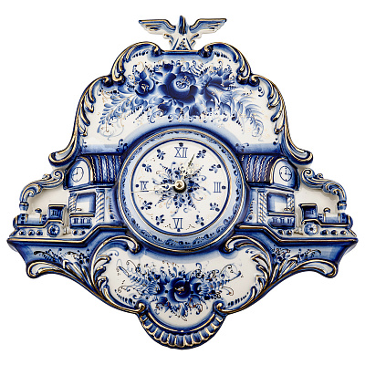 Часы настенные фарфоровые «Железнодорожные». Фарфор Гжель