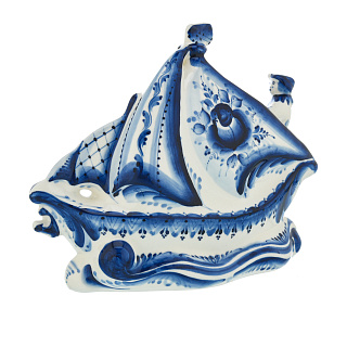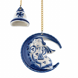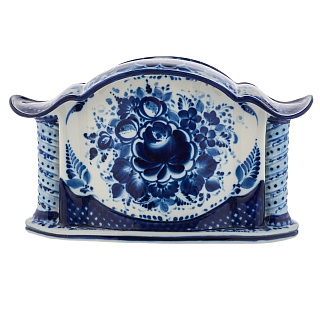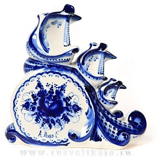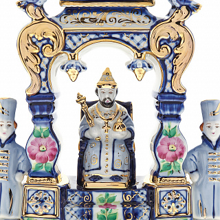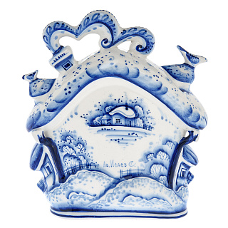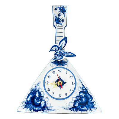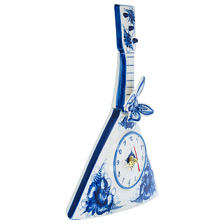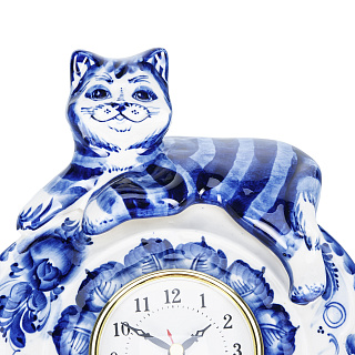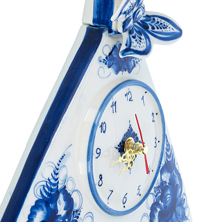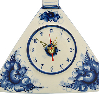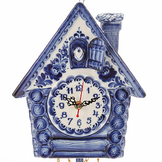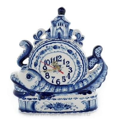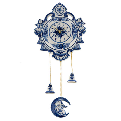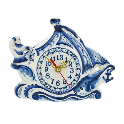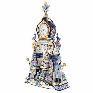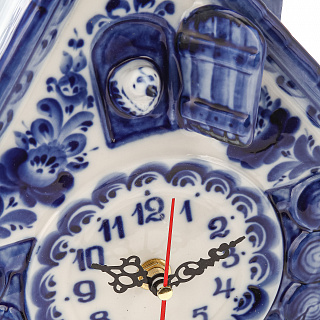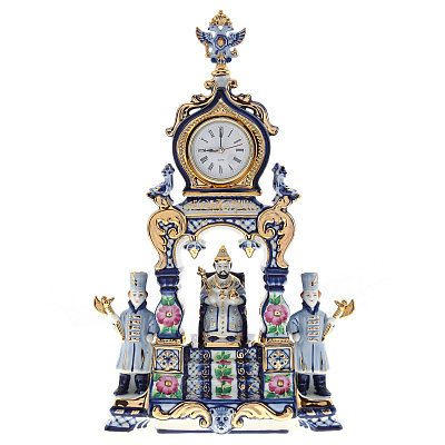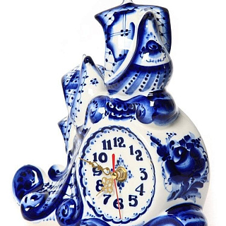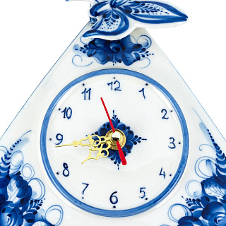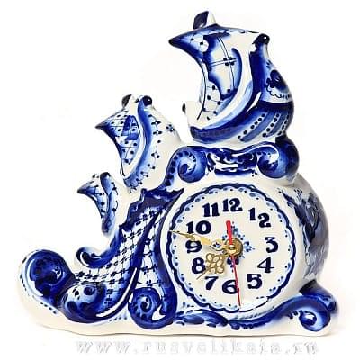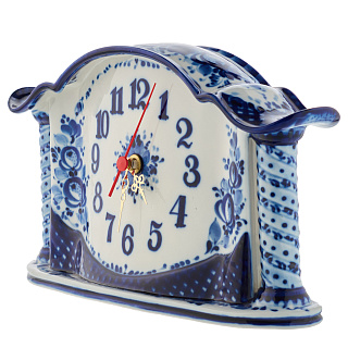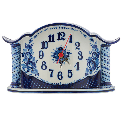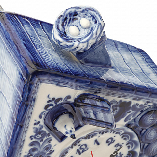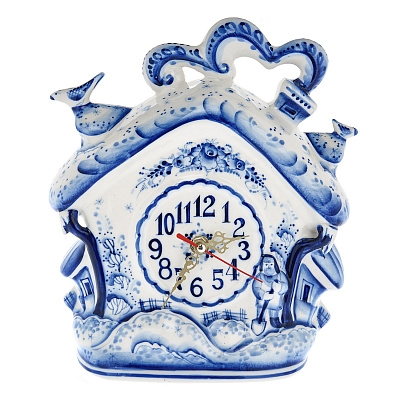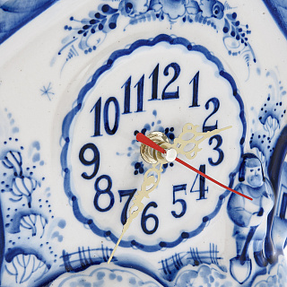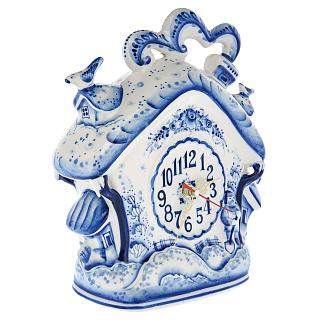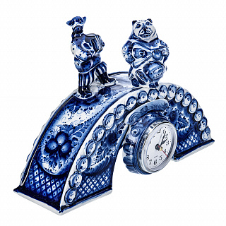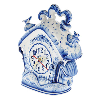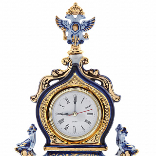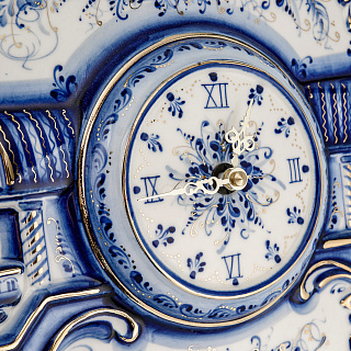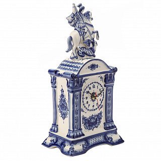 Часы настольные «Охота». Гжель в цвете и золоте. Фарфор Гжель