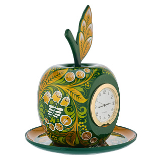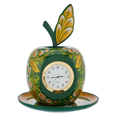 Часы настольные «Яблоко на блюдечке». Хохлома