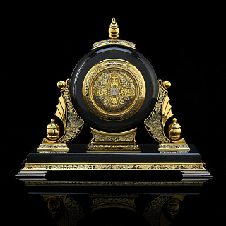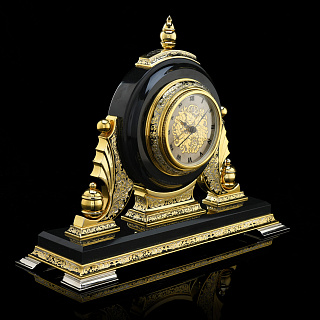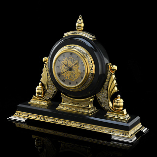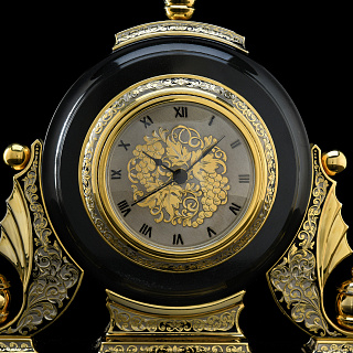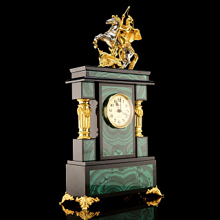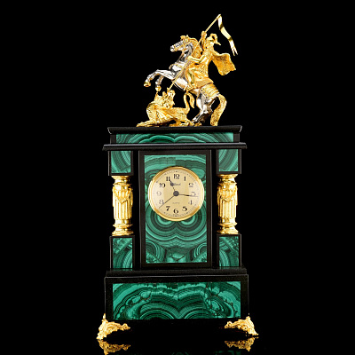 Часы настольные из малахита и латуни с позолотой «Г. Победоносец». Златоуст