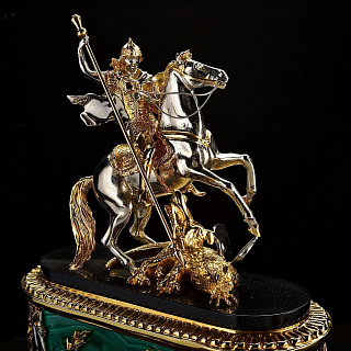 Часы настольные из камня «Георгий Победоносец». Златоуст