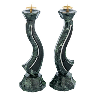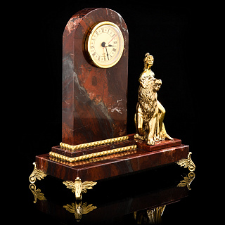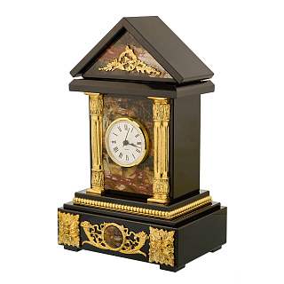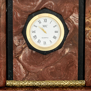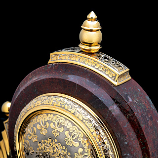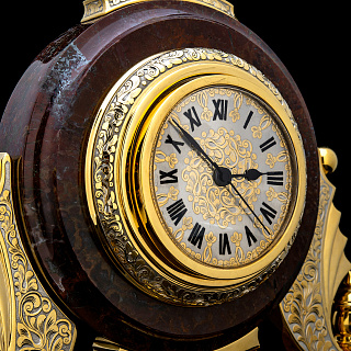 Часы каминные из яшмы и бронзы с двумя 3-х рожковыми канделябрами. Златоуст