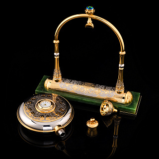 Пасхальное яйцо с часами на подставке из камня. Златоуст