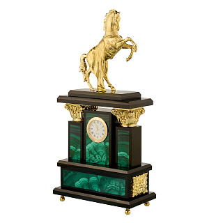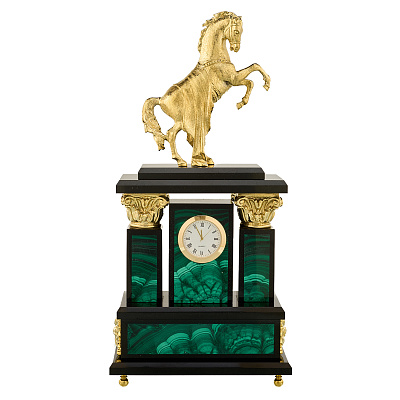 Лошадь Символ 2026 года. Часы настольные из малахита «Конь». Златоуст