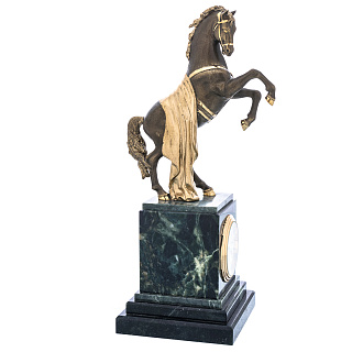 Лошадь Символ 2026 года. Часы настольные из малахита «Конь». Златоуст