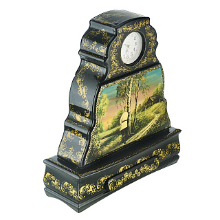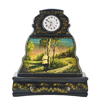 Часы настольные «Охота». Гжель в цвете и золоте. Фарфор Гжель