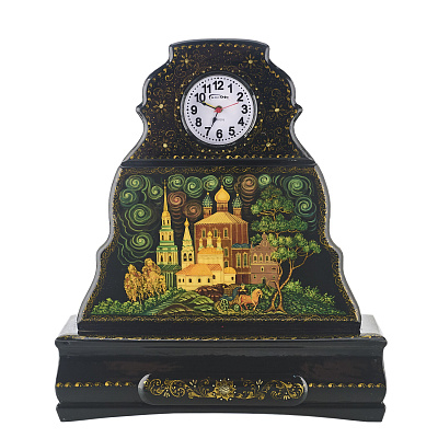 Часы настольные из камня «Георгий Победоносец». Златоуст