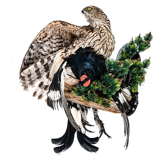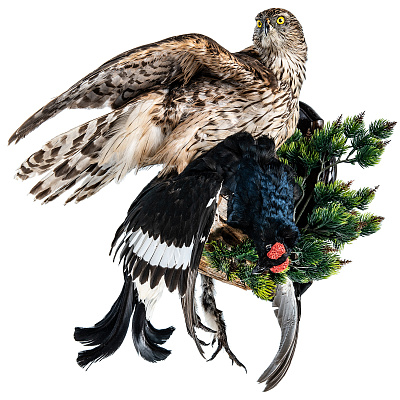 Настенное чучело птицы «Ястреб-тетеревятник с добычей»