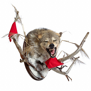Чучело настенное «Голова волка. Воин с флажками»