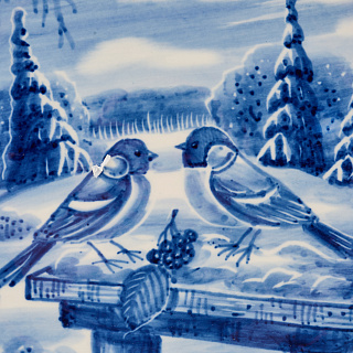 Декоративная тарелка «Снегирь красногрудый». Форма Эллипс. ИФЗ