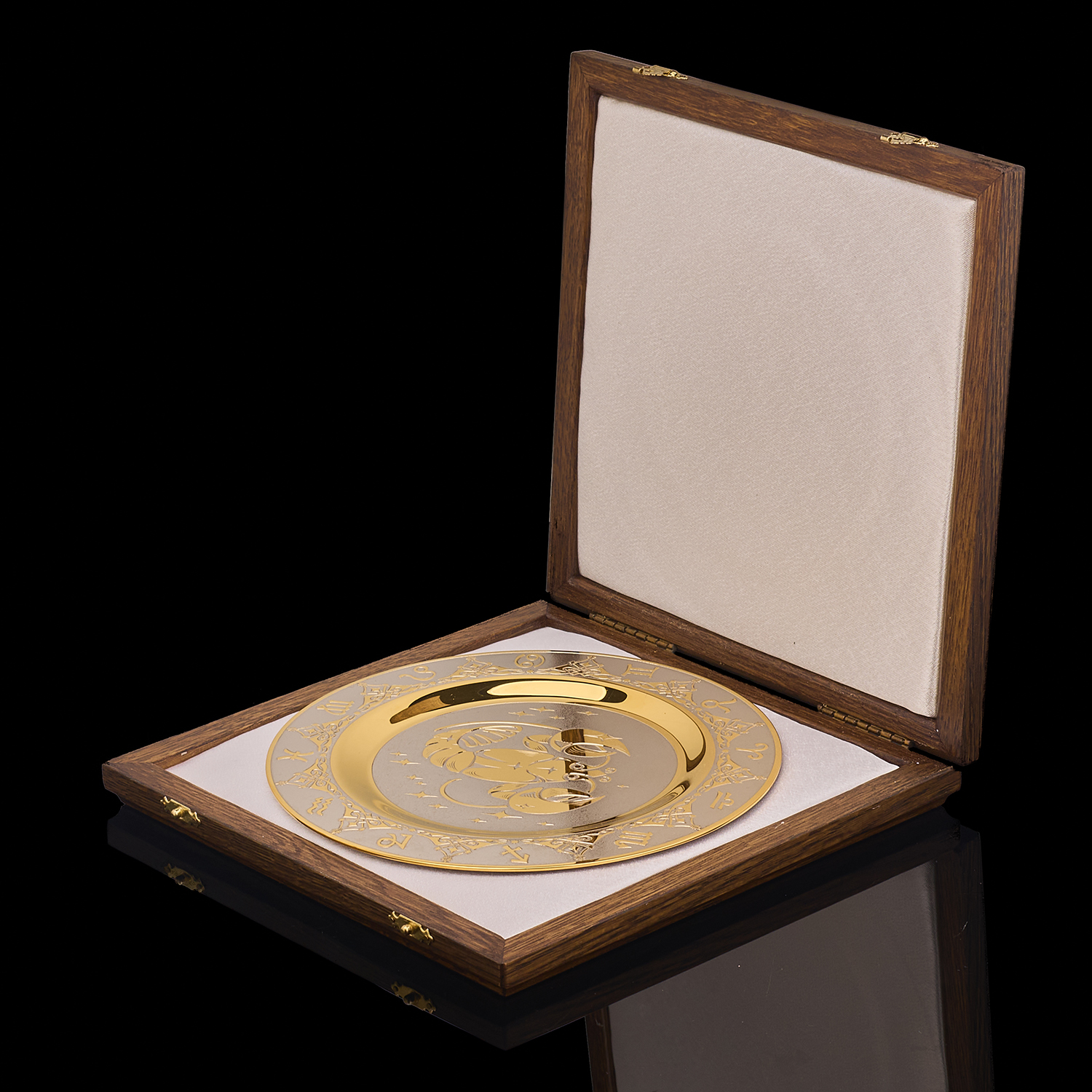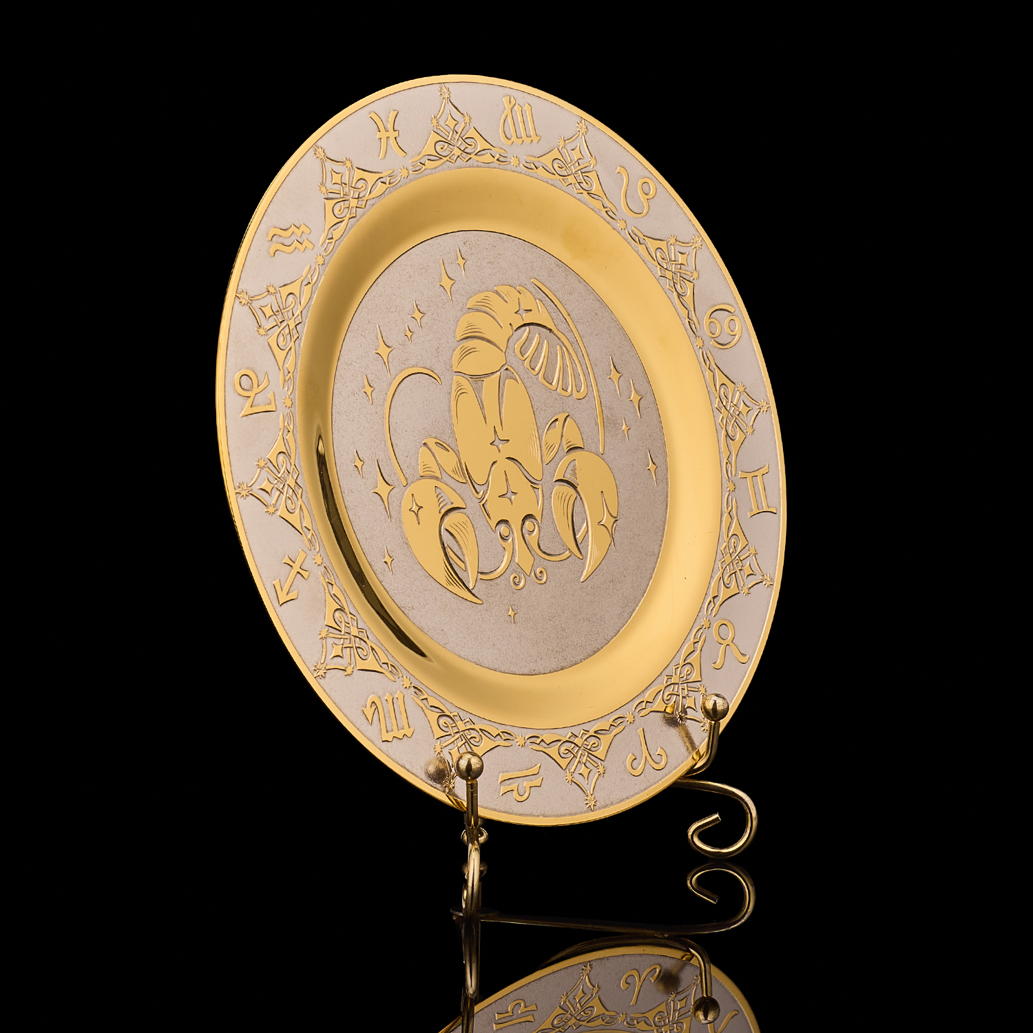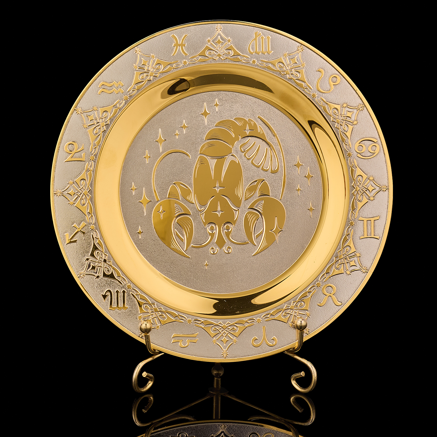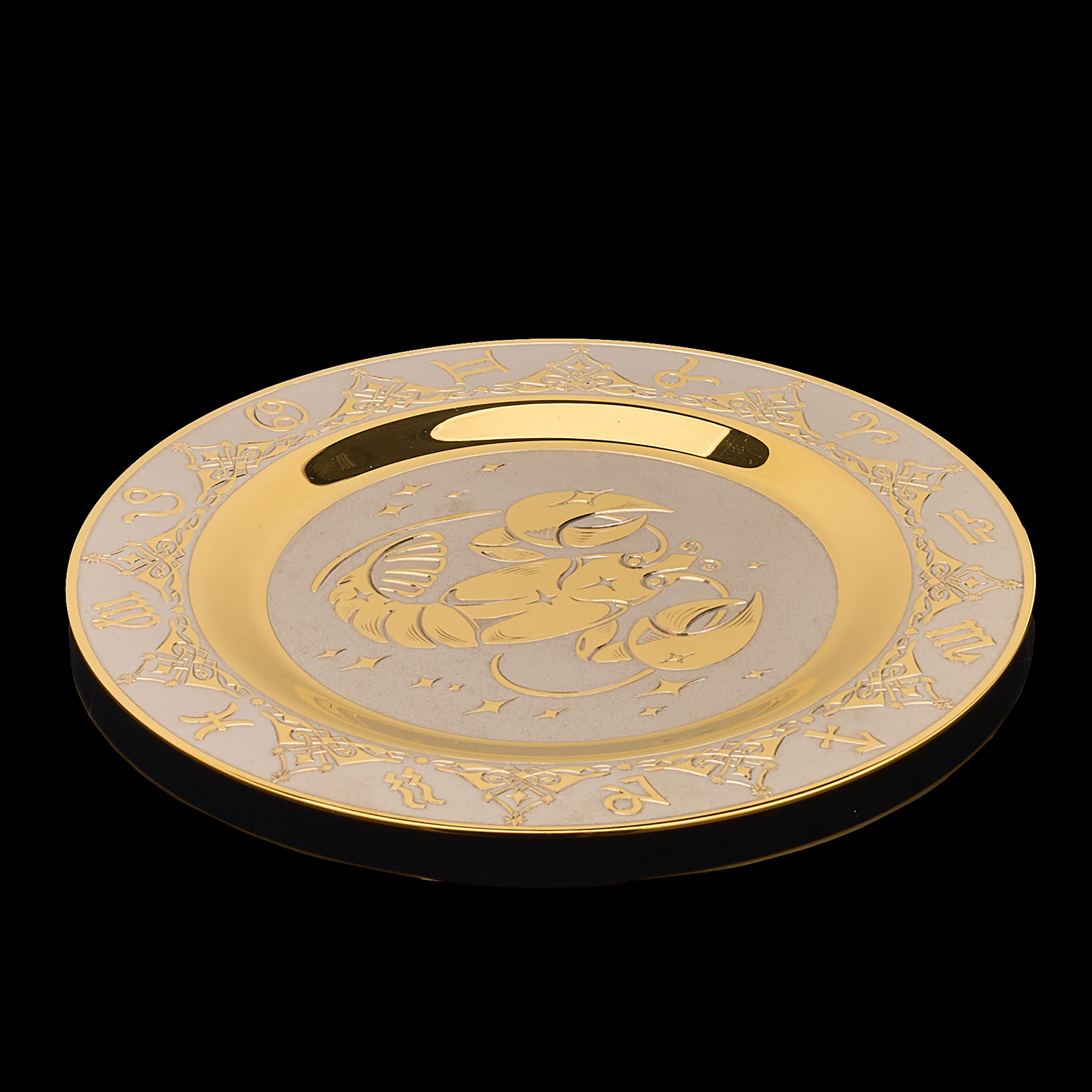 Тарелка декоративная с позолотой "Знак зодиака Рак". Златоуст.