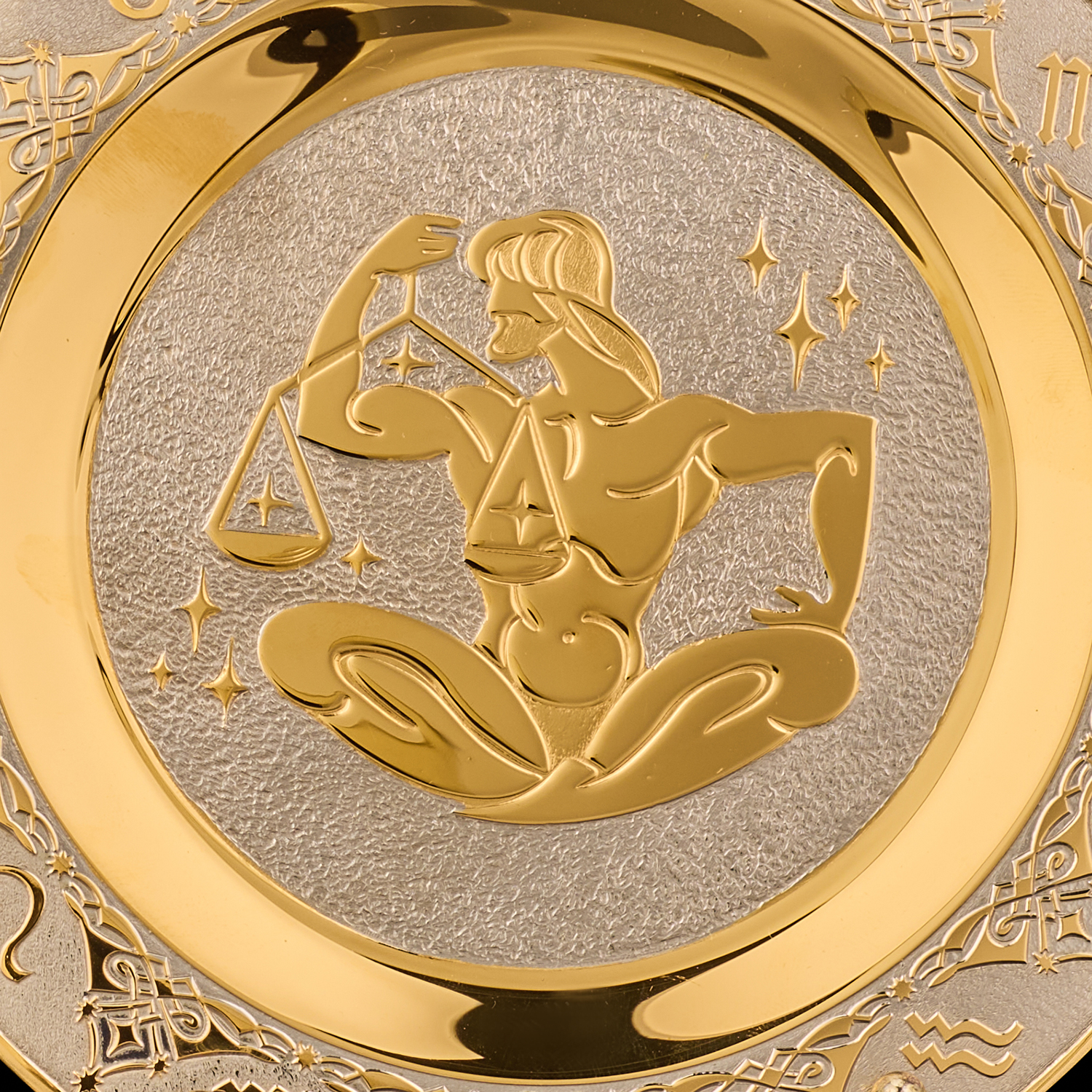 Тарелка декоративная с позолотой "Знак зодиака Весы". Златоуст.