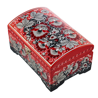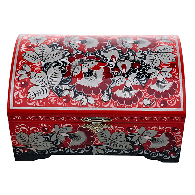 Шкатулка деревянная для украшений «Птичка и малина». Хохлома