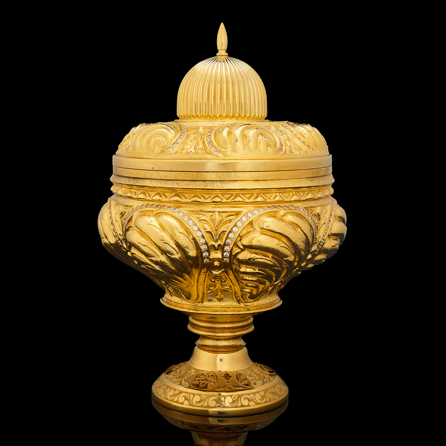 Кубок «Георгий Победоносец с гербом РФ» в подарочной шкатулке из дерева