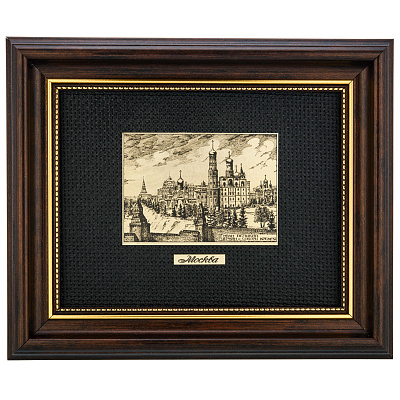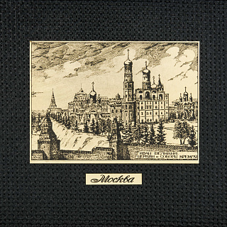 Офорт черно-белый «Вид на Кремль. Старая Москва» 17х22 см