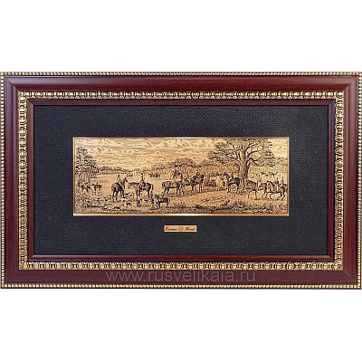 Панно-гравюра «Охотники на привале». Златоуст 36х26 см